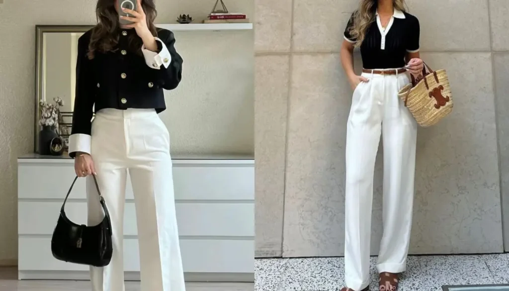 Celana putih adalah pilihan yang sangat cocok untuk baju peach. Kombinasi ini menciptakan kesan bersih, segar, dan elegan. Warna putih juga bisa memberi efek kontras yang baik dengan warna peach, sehingga membuat penampilan lebih menonjol. Selain itu, celana putih mudah dipadukan dengan berbagai gaya, mulai dari kasual hingga formal.
