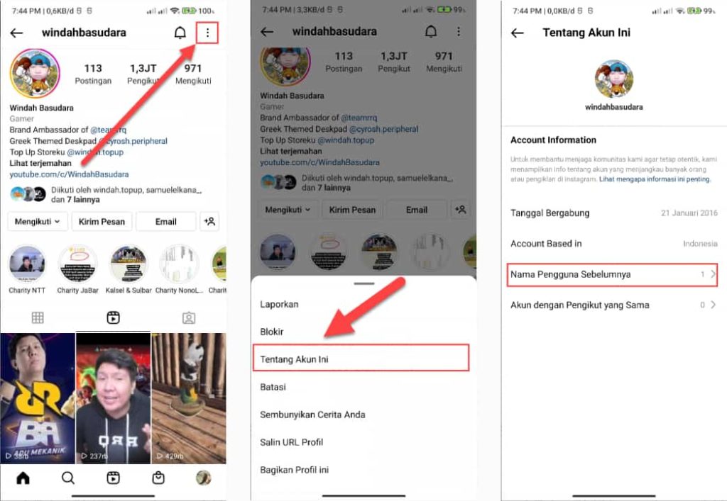 - Instagram: Masuk ke akun Anda, klik ikon profil, dan username akan terlihat di bagian atas layar.