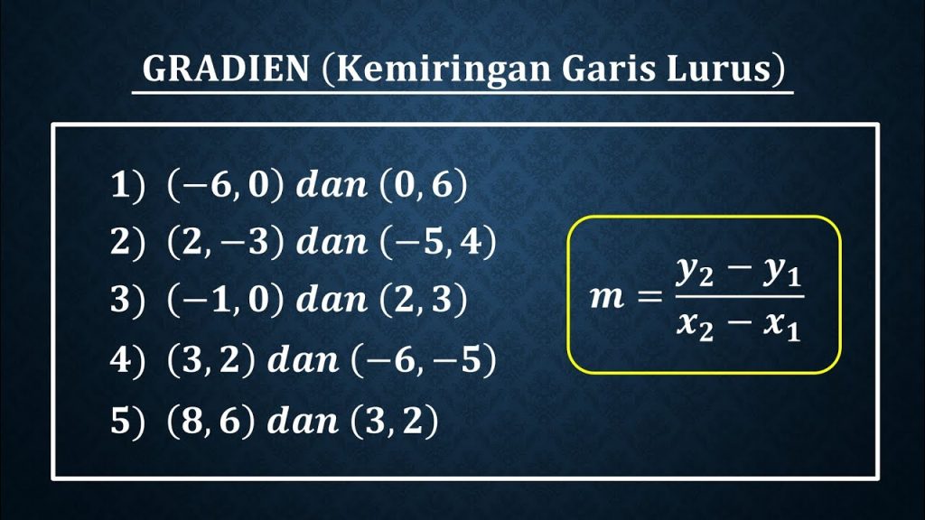 Jika kita diberikan dua titik yang dilalui oleh suatu garis, maka gradien garis tersebut dapat dihitung dengan rumus:
